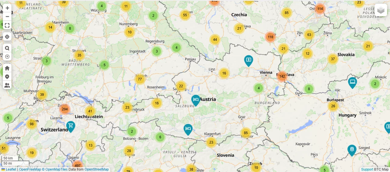 Händler:innen, die Bitcoin akzeptieren, nehmen zu – alleine die deutschsprachigen Einträge auf Coinpages umfassen 43 Seiten, darunter Frisöre, Hebammen, Hotels, Buchläden, Vereine, ....